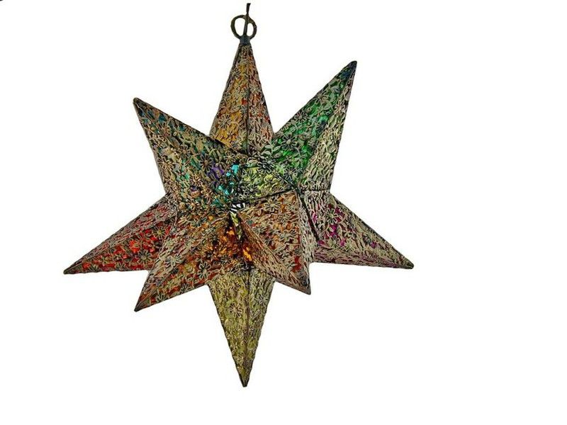 Lampada da soffitto 3D in ferro traforato con cristalli colorati che richiamano lo stile arabo tradizionale. Il suo design dettagliato e artigianale crea un effetto luminoso unico, proiettando motivi decorativi e colori caldi che donano un’atmosfera esotica e accogliente a qualsiasi ambiente. Ideale per soggiorni, sale da pranzo o angoli speciali in cui si desidera una decorazione con personalità ed eleganza. Questa lampada unisce funzionalità e arte, diventando un elemento centrale che valorizza lo stile arabo e il fascino orientale nella casa.